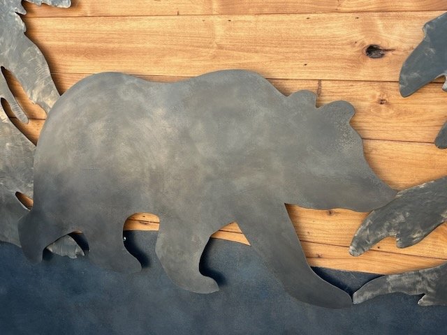 Decorative room divider with flatscreen panel on opposite side (hidden)2025 Materials: fabricated steel, wood